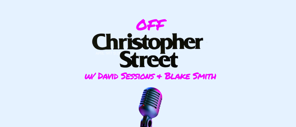 The Off Christopher Street podcast, which explores articles and themes from the magazine, is hosted by David Sessions and Blake Smith.