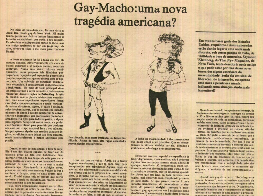 Plus: On Substack, Blake writes up some fascinating context on the translation of Kleinberg's essay in the Brazilian gay newspaper Lampiao da Esquina, and the debate that ensued: